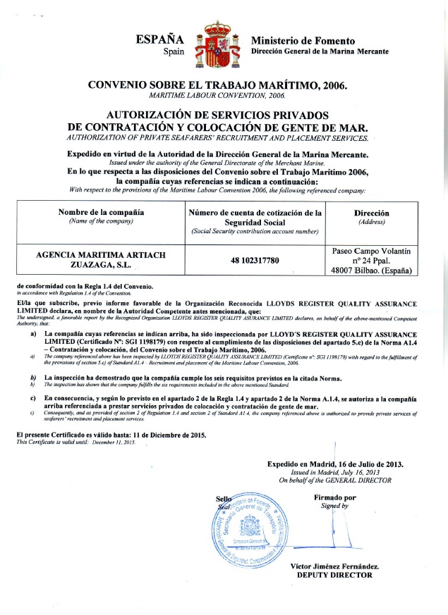 Creation of the company Agencia Marítima Artiach Zuazaga.
